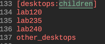Let's say I want to add a new lab system lab120w to my computer lab using my Ansible groups above. I add it to the [lab120] host group.