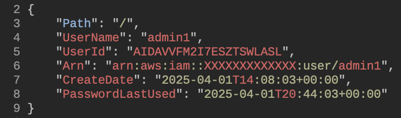 We begin by creating an IAM user "admin1". It has no inline policies.